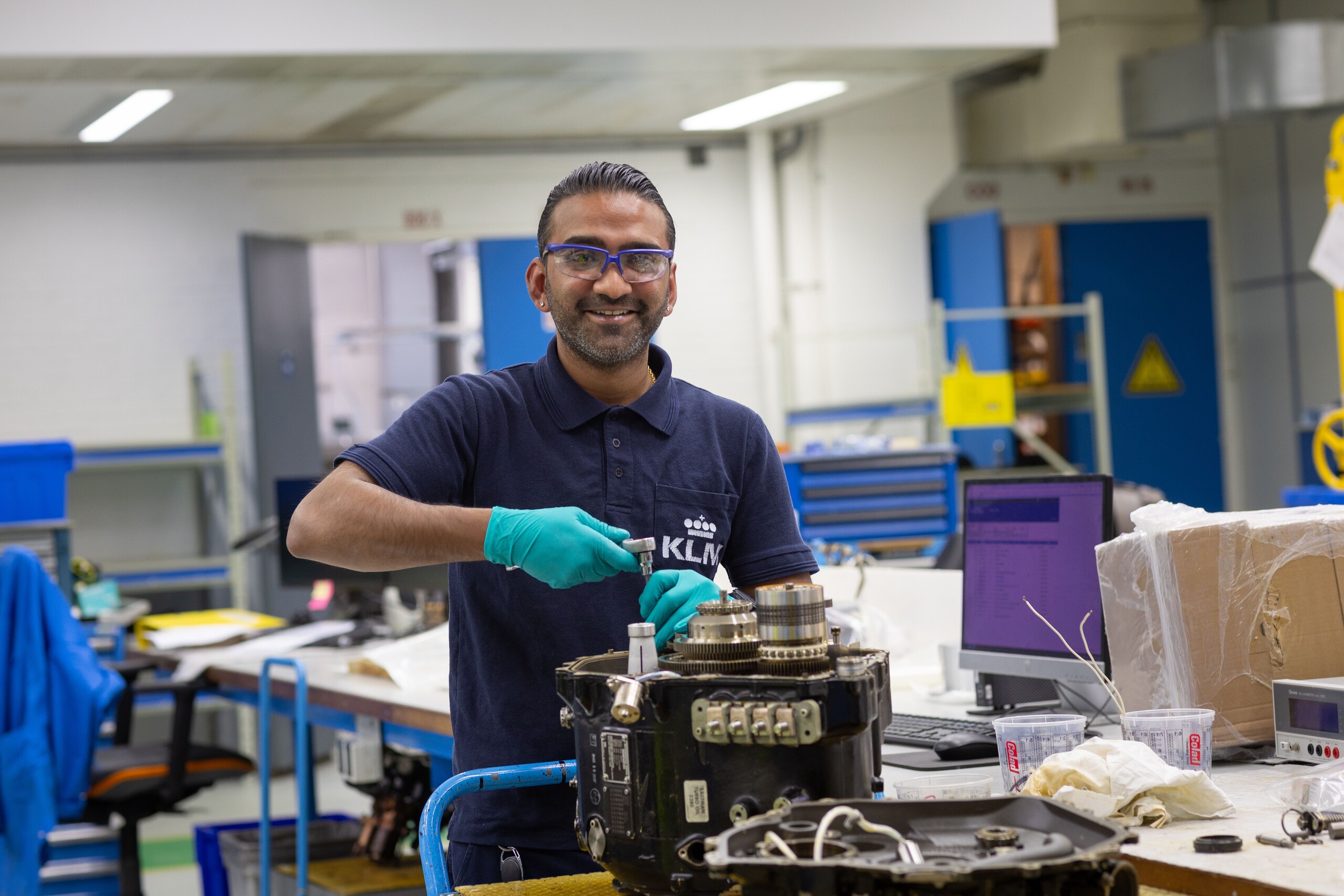 Geboren sleutelaar Als jongen is Maarten (41) al de hele dag met z’n brommer in de weer. ‘Lekker hangen in de garage en met een groepje vrienden vijftig cc’tjes uit elkaar halen.’ Na z’n opleiding aan het Nederlands Luchtvaartcollege gaat hij stagelopen bij KLM. ‘Dat is inmiddels twintig jaar geleden, en ik ben blijven hangen’, lacht hij. ‘Ik begon als hydraulic mechanic op niveau 2, ben doorgestroomd naar niveau 1 en heb daarna een tijd als specialist gewerkt. Nu ben ik teamlead van Shop Hydraulic.’ Zo vader, zo zoon Samen met een andere teamlead geeft hij leiding aan veertig collega’s. Een van hen is Shabier (32), die het sleutelen ook van huis uit mee kreeg. ‘Mijn vader kluste graag aan vrachtwagens, graafmachines, auto’s – van alles eigenlijk. Toen ik klein was, moest ik hem altijd helpen. ‘Geef me die steeksleutel’, klonk er dan van onder de auto. Later, toen ik ouder was, gaf hij steeds meer werk uit handen. Van hem heb ik een hoop geleerd.’ Van autodynamo naar vliegtuiggenerator Dat Shabier uiteindelijk de techniek ingaat, verbaast dan ook niemand. Op z’n vijftiende rondt hij z’n vmbo af en meldt zich aan voor de luchtvaartopleiding aan ROC Hoofddorp. ‘Ik werd afgewezen, dus besloot ik de mbo-opleiding autotechniek te doen. Daarna ging ik aan de slag als automonteur en later als heftruckmonteur op de buitendienst.’ Totdat zijn broertje, die ook bij KLM werkt, hem een vacature doorstuurt. ‘Ik besloot een tweede poging te wagen en te reageren. Dit keer mét succes!’ Wat is nou het grootste verschil met auto’s en vliegtuigen? Shabier, lachend: ‘Een auto rijdt, een vliegtuig vliegt.’ Maarten vult aan: ‘Een auto is één geheel, dat is het eindproduct. Wij werken alleen aan losse componenten, en daarom is dit werk een stuk nauwkeuriger.’ Maar eigenlijk maakt het niet veel uit, vinden ze allebei.Shabier: ‘Geef me een fiets, auto of vliegtuig: ik sleutel eraan. Als je handig bent en technisch inzicht hebt,kun je hier zo aan de slag.’ Leren en werken in één Shabier leert nog elke dag nieuwe dingen. ‘Ik had al best veel kennis, maar hier valt alles op z’n plek.’ Maartenlegt uit: ‘We trainen hier on the job. Iedereen die nieuw is, koppelen we aan een ervaren collega. Bij Shabier zagen we al gelijk dat hij superhandig is – maar hij moest natuurlijk nog wel leren hoe we hier precies werken. Daar is zo’n ‘coach’ perfect voor.’Binnenkort gaat Shabier binnen zijn functie een niveau omhoog. ‘Ik wil dit werk eerst helemaal onder de knie krijgen, en daarna hoop ik me te specialiseren.’ Work hard, play hard De sfeer bij Shop Hydraulic is goed, ook daar zijn Shabier en Maarten het over eens. ‘We werken hier keihard, maar er is natuurlijk ook ruimte voor gezelligheid. Tijdens de avonddienstenzijn we meestal met een stuk of vijftien collega’s. We zetten dan vaak een muziekje aan, en eten altijd samen in de kantine.’ Is er ook iets niét leuk? Daar hoeft Shabier niet lang over na te denken: ‘Aan het begin moest ik wennen aan alle administratieve taken – maar gelukkig word ikdaar wel steeds handiger in!’ We zijn hard op zoek naar een hydraulic mechanic. Kom je erbij? Gezellig!