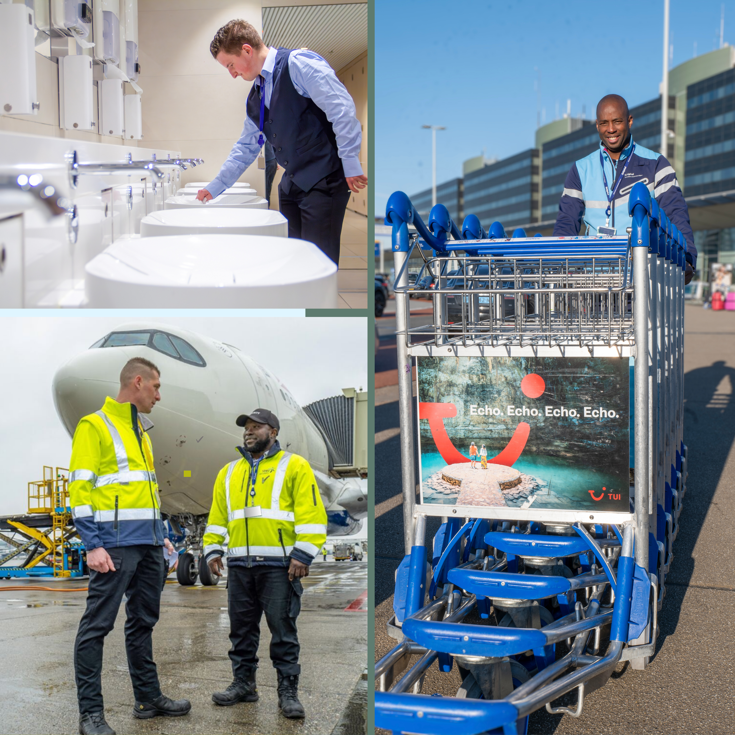 Dagelijks verwelkomen wij onze passagiers en collega’s op een aangename, schone en duurzame luchthaven. Reizen beginnen en eindigen op de luchthaven. Eerste en laatste indrukken van tevreden passagiers. Dat is precies wat we leveren, met maatwerk vliegveld schoonmaak en aangrenzende facilitaire diensten zoals karrenregulering en vliegtuigbeveiliging. En we verbeteren iedere dag. Altijd samen met jou en op basis van jouw behoeften. Dat vinden we great work.